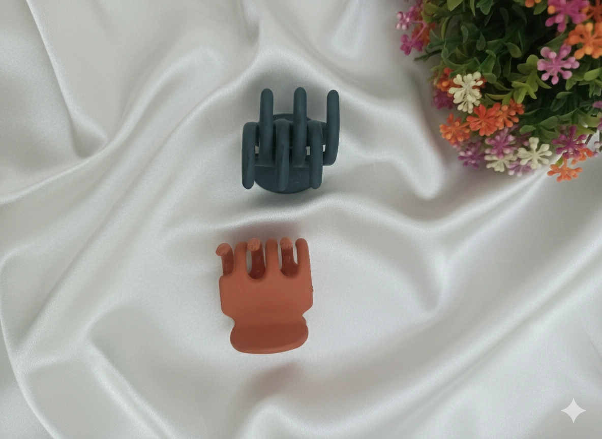 Blue and Brown Small Size Clutchers/Hair Claw Clips for women and girls (Pack of 2 pcs)