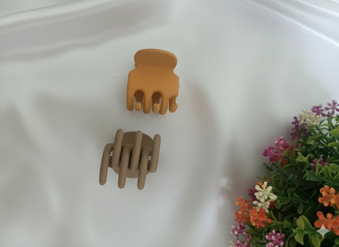 Greyish Brown and Yellow Small Size Clutchers/Hair Claw Clips for women and girls (Pack of 2 pcs)