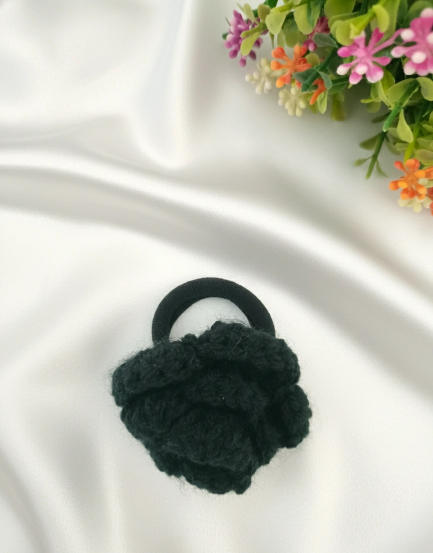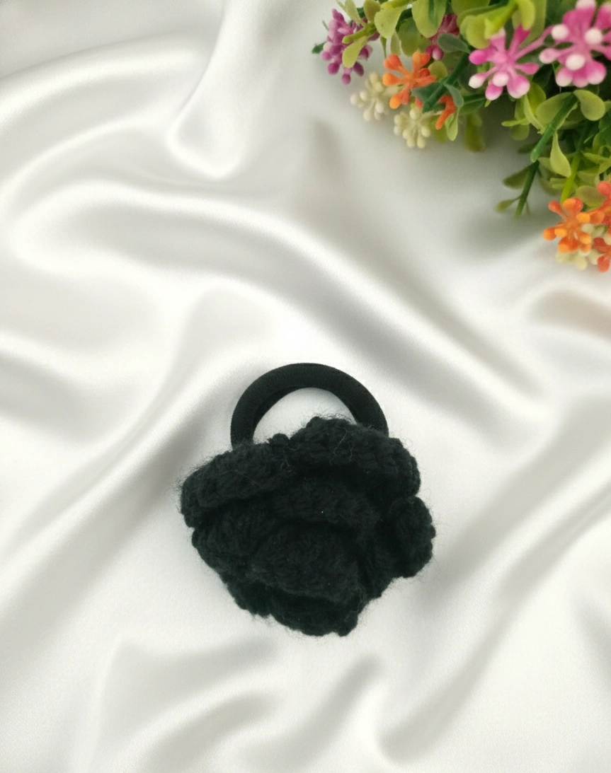 Handmade Knitted and Crochet Black rose flower rubber band, hair band, and hair tie for women and girls (Pack of 1)