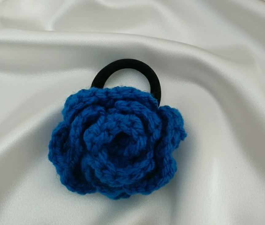 Specification: Handmade Knitted and Crochet Blue rose flower rubber band, hair band, and hair tie for women and girls (Pack of 1)