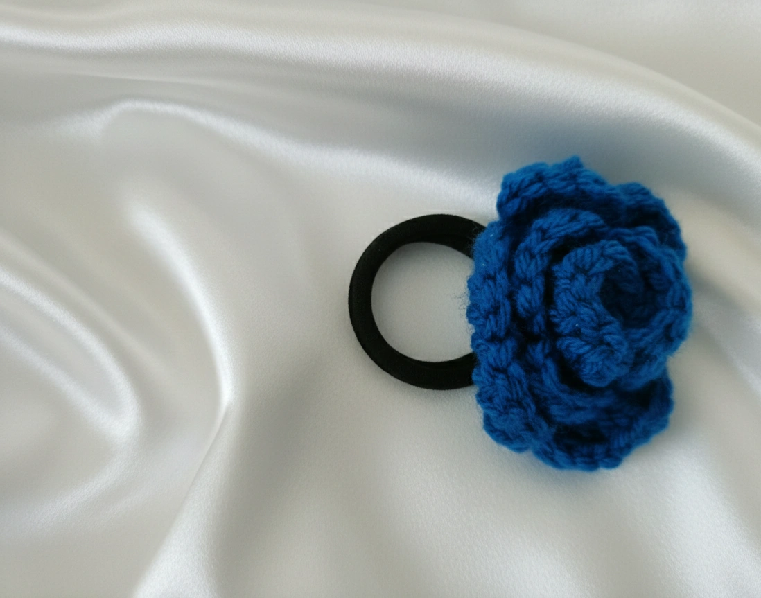 Handmade Knitted and Crochet Blue rose flower rubber band, hair band, and hair tie for women and girls (Pack of 1)