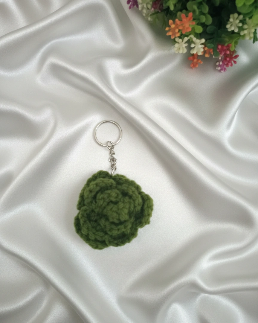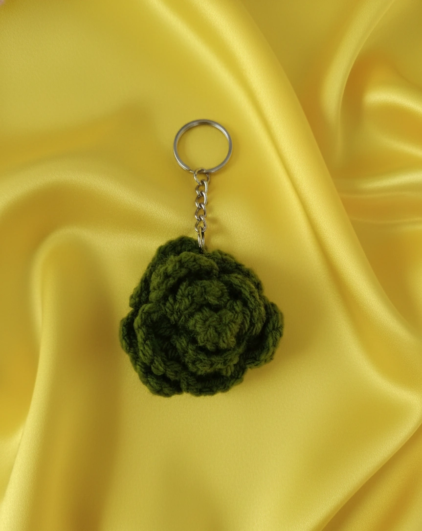 Handmade Knitted and Crochet Olive Rose keychain for women and girls (Pack of 1)