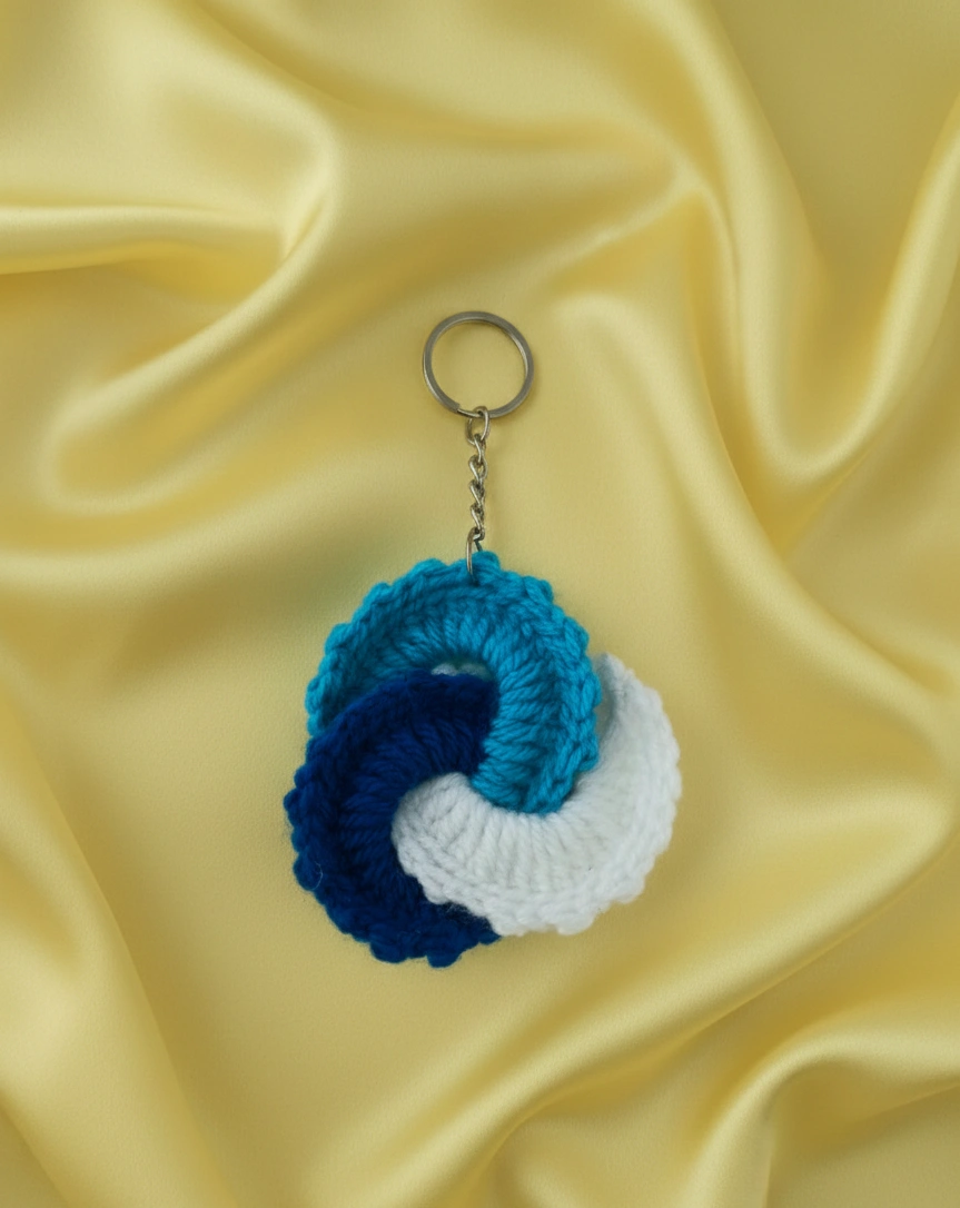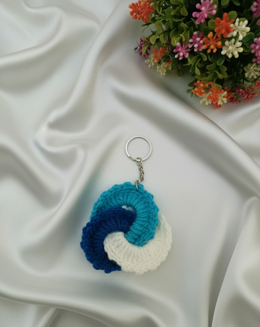Sky Blue, White, Blue Handmade Knitted and Crochet 3 Loop/Tricolor Swirl keychain for women and girls (Pack of 1 pc)
