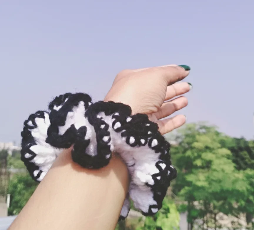 Specification: White and Black Handmade Knitted and Crochet Scrunchie hair tie for women and girls (Pack of 1)