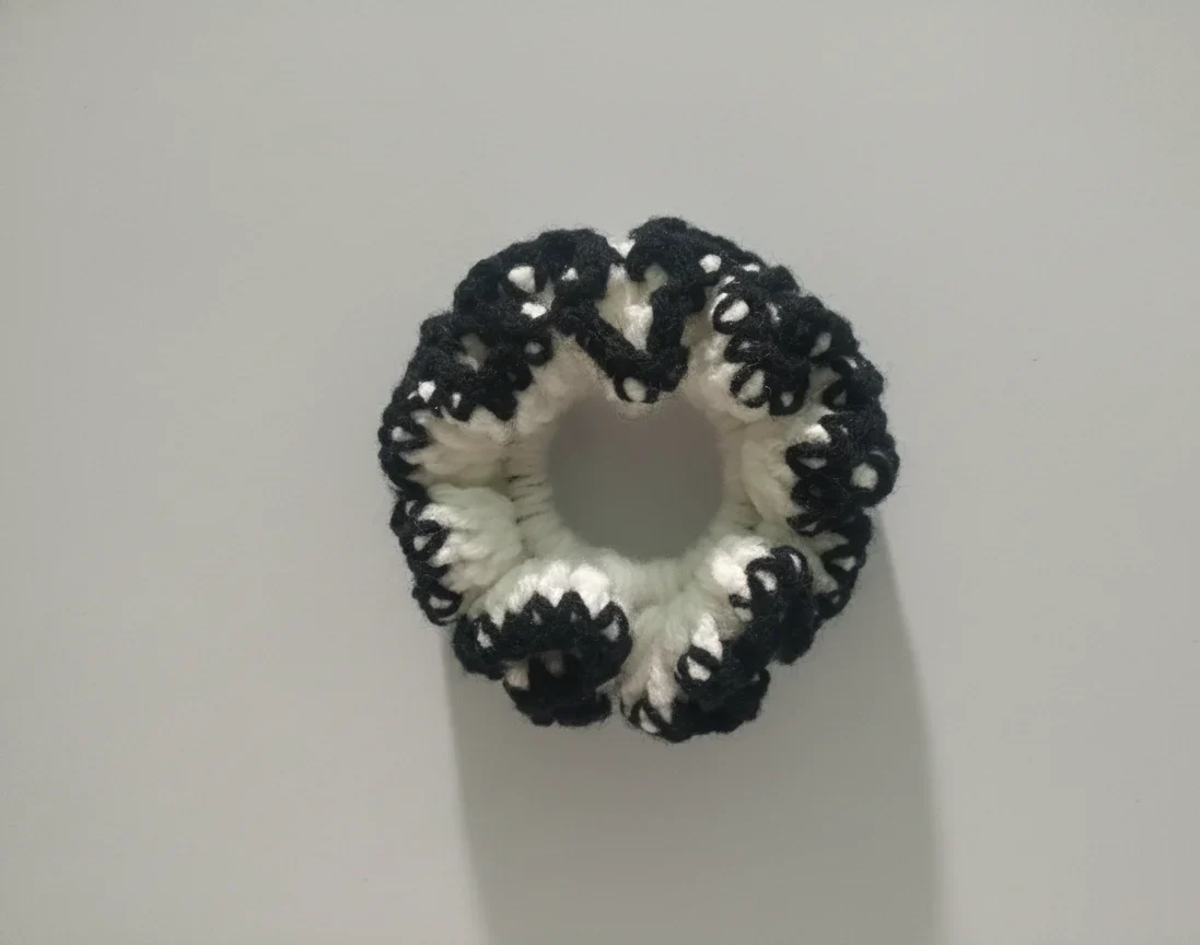 White and Black Handmade Knitted and Crochet Scrunchie hair tie for women and girls (Pack of 1)